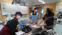 家庭科の時間に調理実習を行いました。人参やえのきをベーコンで巻き塩コショウをか...