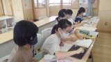 手芸クラブの様子です。 真剣に作品作りに取り組んでいます。