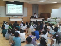 学校田の稲刈り体験をしました。子供たちは稲刈りの仕方の説明を聞いた後、二人ペアに...