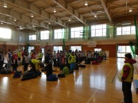 いよいよ、スキー宿泊学習の始まりです。体育館で出発式を行いました。 子供たちの...