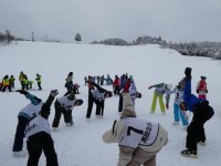 準備運動を行い、技能に応じて練習を始めました。初めてスキーをする子供たちもたく...