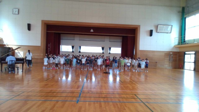 連合音楽会のオーバード・ホールでの発表に向けて、今日は、体育館で歌いました。