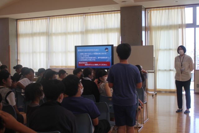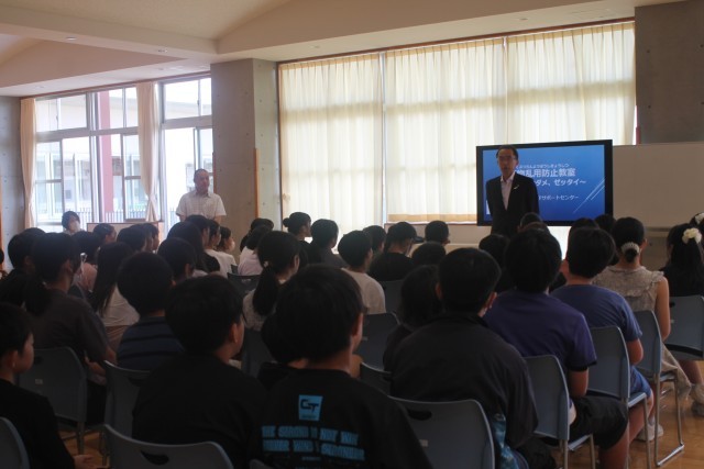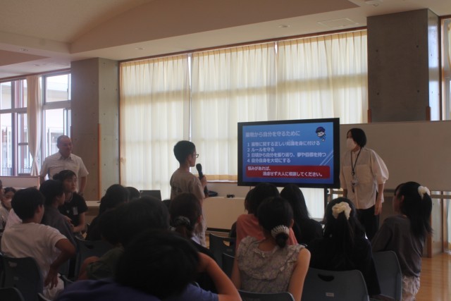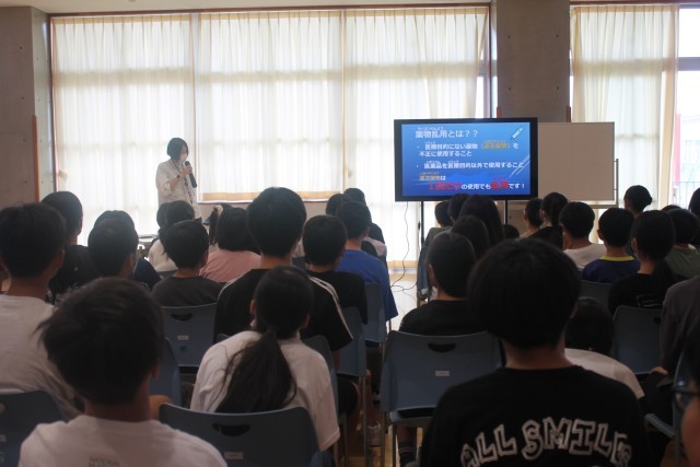 6年生 薬物乱用防止教室 公開日 2025/09/20 更新日 2025/09/20 6年生のページ 富山県警察本部より講師をお招きし、薬物乱用防止教室を開きました。違法薬物を使用すると、脳や神経回路に深刻な影響を及ぼすこと等を、写真を見せながら分かりやすく説明していただきました。教室の最後には、講師に進んで質問する姿や違法薬物の標本を興味深そうに観察する姿が見られました。 +2