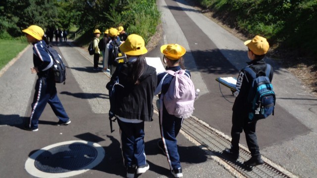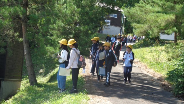 村内ビンゴオリエンテーリングの様子です。子供の村内のチェックポイントを班の仲間と協力しながら探しました。