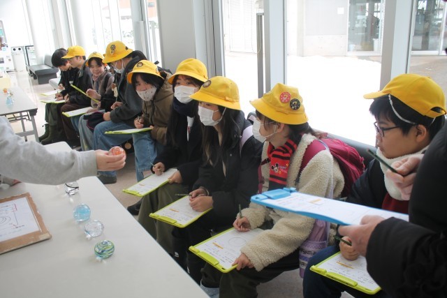 6-2 校外学習 ガラス工房 公開日 2026/01/26 更新日 2026/01/26 6年生のページ 今日は2組が体験してきました。 どのような形にするのか、何色のガラスを組み合わせるのかなどのデザインを自分で決めてスケッチし、スタッフの方に手伝っていただきながら世界に一つだけのオリジナルペーパーウェイトをつくりました。 子供たちは、「ガラスが入っている窯の近くはけっこう暑かった!」「ガラスを滑らせて形を整えるところが楽しかった!」などとうれしそうに話していました。完成が楽しみです。 +7