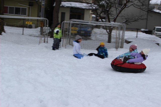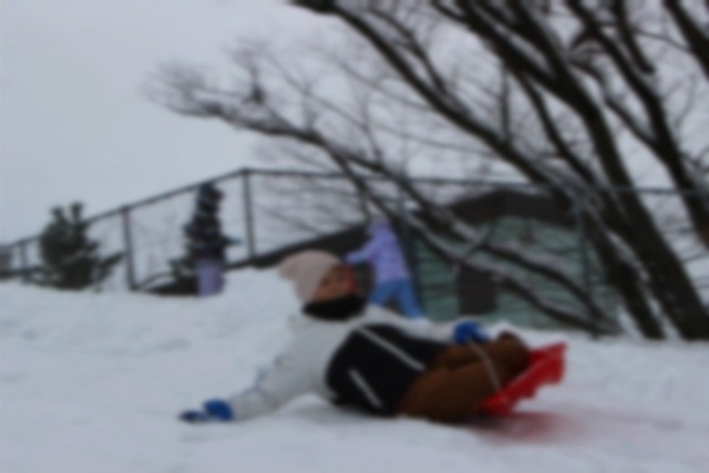 スキー山に登り、滑り降りるそり遊びは、子供たちに大人気です。どの子もスピードに乗って、思いっきり滑る様子が見られました。