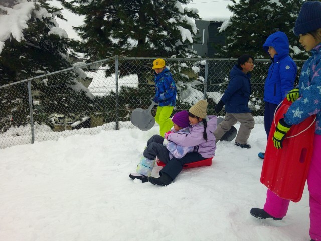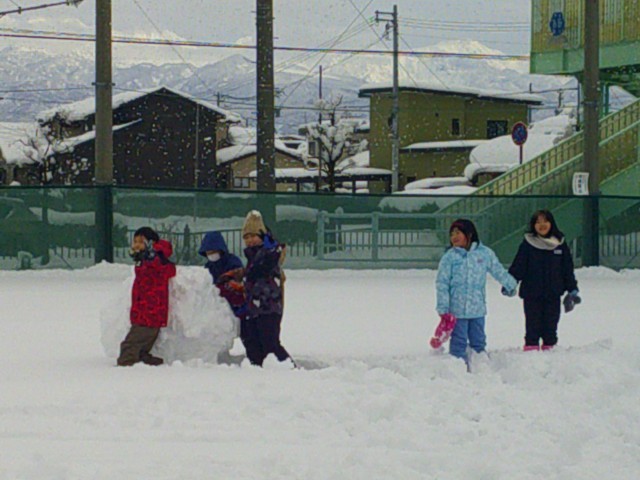 とうぶっ子山からそりで滑ったり、大きな雪玉をつくったりと、グラウンドで思い切り遊びました。