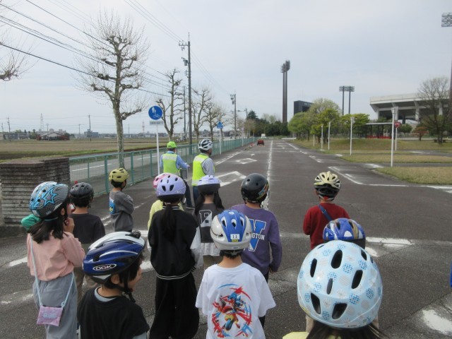 4月15日に自転車安全教室がありました。富山県交通公園と交通安全博物館に、バスに乗って子供たちは出発。