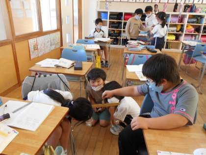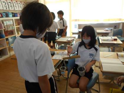 子供たちは算数でも重さの学習をしています。てんびんを使って物の重さを比べました。理科で学習したことを生かしてこれからも学習を進めてって欲しいです。