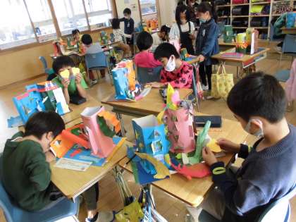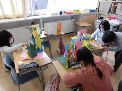 「まどをひらいて」の作品が完成しました。今日は、グループで友達の作品の「すてき」を見つけ合い、付箋に書いて友達にプレゼントしました。すてきなところをたくさん見つけてもらって、みんなうれしそうでした。