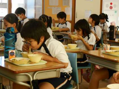 今日の献立は「とんこつラーメン」でした。子供たちは朝から「今日の給食はとんこつラーメン!」「やったー!」と楽しみにしていました。