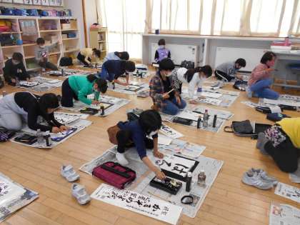 今週から書き初めの練習が始まりました。新聞紙を準備したり、机を出して床に習字道具を広げたりと、普段とはまた違った雰囲気の中子供たちは楽しそうに取り組んでいました。