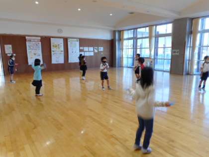 室内でもパワーアップTOBUに取り組み始めました。縄跳びでいろいろな技に挑戦していきます。