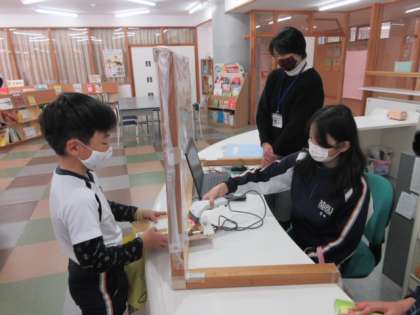 4年生は、週一回の本の貸し出しに行ってきました。先週行った図書委員会の企画にて、見事貸し出し体験券が当たった子供は、貸し出し体験を行いました。3人が10人ほど体験し、緊張しながらも行っていました。