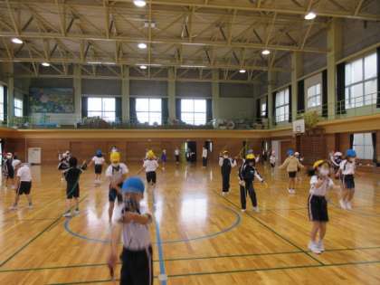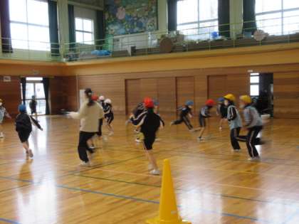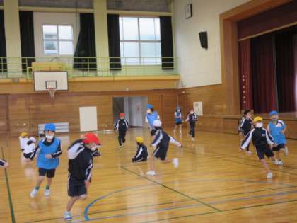 今日の体育館はとても寒く感じられましたが、鬼ごっこと縄跳びをして、たくさん汗をかきました。子供たちは寒くても元気いっぱいで、1時間、目一杯、運動を楽しみました。