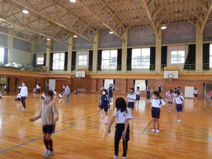 雪も降って寒い日が続きますが、体育の学習で子供たちは大縄と短縄に挑戦しています。自分のめあてとして身に付けたい技や跳び続けられる時間を増やすために、子供たちは「なかなか難しい」「長い時間を跳ぶのは大変だ」と言いながらも、頑張って練習しています。