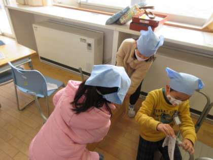 今日は、いつも使っている教室にありがとうの気持ちを込めて、大掃除をしました。普段できない机・いすの脚のほこりを取ったり、床の汚れを落としたりしました。教室がぴかぴかになり、子供たちはうれしそうでした。明日の終業式や新年を気持ちよく迎えられそうです。