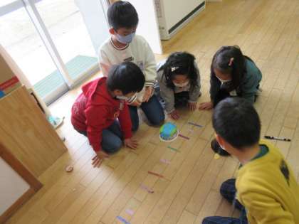「同じおもちゃなのにおもりを変えると飛び方がちがうね」「ゴムの本数や太さで高さが変わるんだ」など、たくさんの発見をした子供たちでした。
