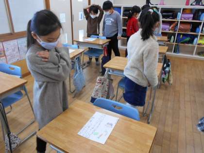 国語の学習で子供たちは、冬を感じる言葉を集めました。クリスマス等の行事にまつわる言葉や子供たちのすきな雪合戦やかまくら等の雪遊びに関する言葉がたくさん挙がりました。子供たちはそれぞれの気に入った言葉で詩や俳句をつくり、互いの作品を鑑賞しています。