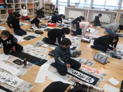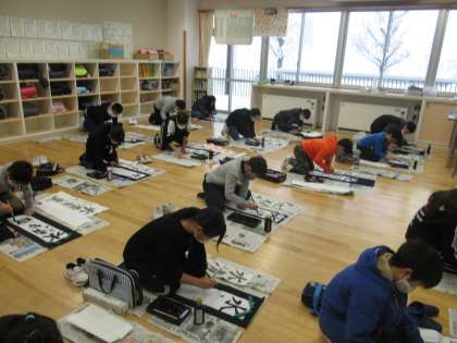 明けましておめでとうございます。今日は、始業式と書き初め大会がありました。書き初め大会では、冬休みの練習の成果を発揮し、力強く揮毫しました。来週、書き初め作品展がありますので、ぜひ子供たちの作品を見にいらしてください。