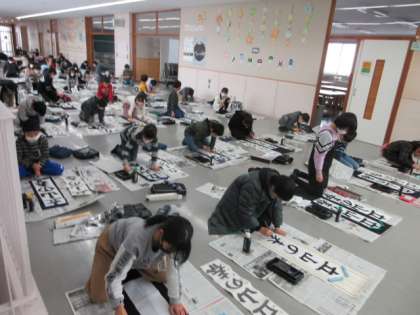 いよいよ3学期が始まりました。今年もよろしくお願いします。4年生は、「立山の春」という字を心を込めて、真剣に書きました。筆の運び一つ一つに気を付けながら、今年の抱負をもってしっかりと書くことができました。
