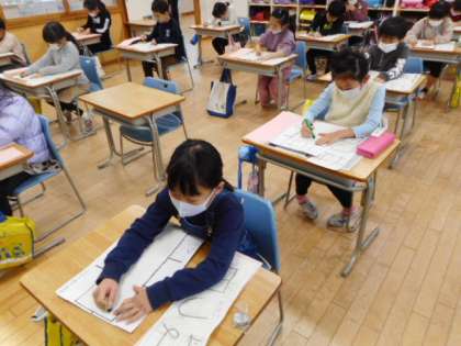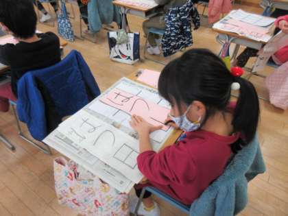 3学期が始まり、書初め大会を行いました。子供たちは、冬休みに練習した成果を発揮しようと、丁寧に、力強く「はつ日」と書きました。真剣な表情で取り組んでいました。