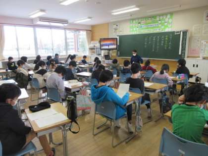 4年生は、朝活動に、二分の一成人式の曲を選定しました。4つの曲から自分たちの気持ちに一番近いものにしようと、歌詞を見ながら真剣に聴いていました。