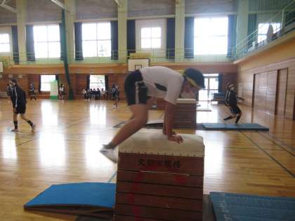 ようやく臨時休校が明け、今日から3学期の授業が始まりました。体育では、跳び箱運動に取り組みます。まずは、大きな開脚跳びに挑戦しました。通常の開脚跳びより、体を高く上げる分、難しい技ですが、子供たちは一生懸命技の習得を目指して練習しています。