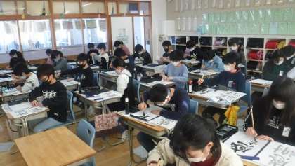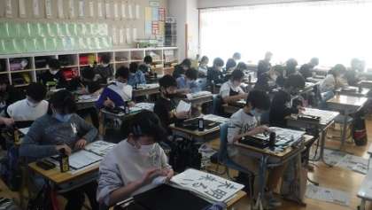 6年生の書写も後少し。ということで、今回は今までの学習を活かして、教師が用意した言葉を自分で選んで書く書写の時間にしました。教師が提示した言葉は、「明るい未来」「固い友情」「ゆずり葉」「将来の夢」「感謝」「光る銀河」「ゆずり葉」「旅立ちの朝」「七転び八起き」。一人一人、思うところがあるようで、自分で選んだ言葉に思いを込めて真剣に練習に取り組んでいました。どの子も1年間の成長(上達)を感じさせる素敵な字を書いていました。来週清書をしますが、どんな作品になるか今から楽しみです。
