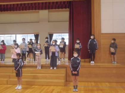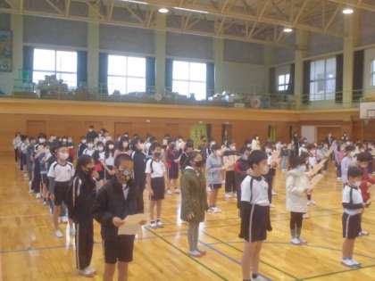 今年度初めての歌声集会を、2年生と2学年で行いました。久々に歌った曲は、「心が今日も笑顔」です。きれいな声にしようと意識して歌いました。歌うところを子供たちが選んで歌ったり、歌いたい人がステージの上で歌ったりしました。