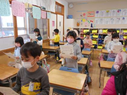 2月の歌声集会に向けて、「こころが今日も笑顔」を練習しています。すてきな歌詞で、子供達も大好きになり、きれいな歌声を目指して歌を覚えています。