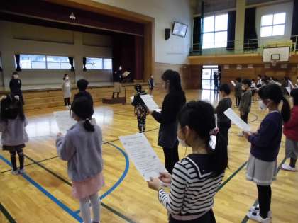 感染対策をしっかりとして、今朝は4年生と一緒に歌声集会に参加しました。久しぶりの歌声集会!「心が今日も笑顔」という曲をみんなで歌いました。最初は緊張していましたが、みんなで一緒に歌ううちに、素敵な声が出るようになってきました。表情もにこにこ笑顔になりましたよ。