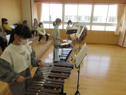 管楽器クラブでは、6年生の合奏曲「夜に駆ける」と4〜6年生の合奏曲「炎」を練習しています。校長先生や外部の先生にご指導いただき、うまく演奏できるようになってきました。本番まであと少しですが、がんばります!