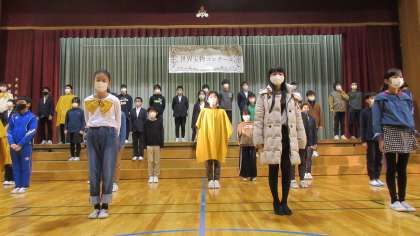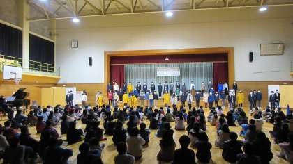 2月10日、6年生が下級生に向けて2回も劇を演じてくれました。緊張感の中にも、演じることを楽しもうという雰囲気が感じられ、6年生はのびのびと演技していました。下級生の予想外の反応にも、冷静にアドリブで返したりするあたりは「さすが6年生」と感心させられました。1回目の公演の後、退場用に伴奏をしていたピアノの周りに6年生が集まり、自然発生的に歌声が生まれ、その輪がどんどん広がる様は映画を見ているかのような素敵な光景でした。2回目に見に来た1・2・3年生は、ますます冴え渡る6年生の演技に、笑い転げたり、ズルい行動に本気で文句を言ったりと劇の世界に引き込まれていきました。そして、劇の終了後には惜しみない拍手とお礼の声が6年生に贈られました。下級生を見送る6年生の表情は誇らしげで、やり切った充実感で満ちあふれていました。放課後には、感想やお礼のお手紙も届きました。今回の2回公演は6年生にとても、下級生にとってもとても素敵な時間になったようです。6年生さん、素敵な時間も本当にありがとう!