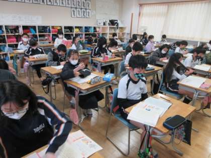 国語科では、主語と述語の関係や、修飾語などを使いながらつながりに気を付けて文章を書き直しました。句点を増やし、一文を短くした方が分かりやすくなることや、同じ言葉を省略しながらより分かりやすくなるように考えました。
