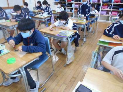 子供たちは磁石の極について調べています。N極とS極の名前は知っている子供は多いですが、磁石同士を近づけてどのような反応が出るか、実験しながら確かめていました。