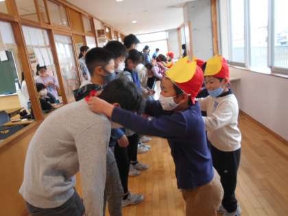 朝活動の時間には、6年生さんににこにこになってもらおうと、気持ちをこめて作ったメダルをプレゼントしました。子供たちは「緊張したけど、上手に渡せてよかったな」「6年生さんがにこにこになってくれて嬉しかったよ」等話しており、「にこにこ大作戦〜メダル編〜」は大成功でした!