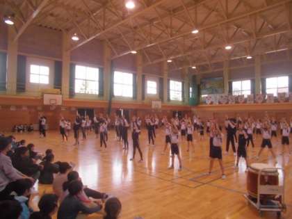 4年生は、6年生を祝う集会をダンスとエールでお祝いしました。「声を大きく」「楽しむ」「入退場」を意識してできたと感じた子供たちが多かったです。終わってからも、他の学年の発表を見ながらお祝いの気持ちの余韻に浸っていました。