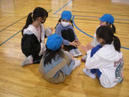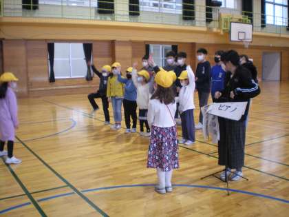 6年生さんが、「なかよしになろう、思い出集会」を開いてくれました。初めてのジェスチャーゲームは、最初は緊張していましたが、ちょっとした動きで互いにすぐに答えを言い当てていて、びっくり。猛獣ハンターは、仲間をつくった後、「最近楽しかったこと」等いろいろなお題で話を聞き合いました。「自分と同じでびっくりした」と、6年生さんのことを知ることが出来て、うれしそうでした。6年生さん、楽しい思い出のプレゼントをありがとうございました。