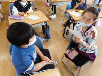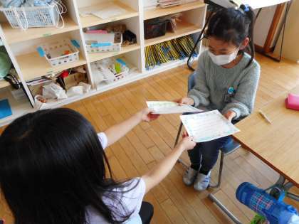 2年間一緒に過ごした友達のすてきなところを手紙にして伝え合いました。すてきなところを伝える人も、手紙を貰った人も嬉しそうで、みんな笑顔になっていました。ぽかぽか言葉でいっぱいの教室です。