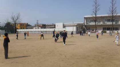 みんな、追いかけられているのに、とてもうれしそう。クラスのメンバー全員で鬼ごっこをしたことが小学校生活の楽しい思い出の一つになったことでしょう。