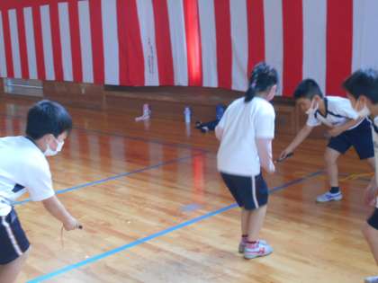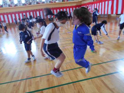 今日の体育は、なわとびをしました。後ろとびからあやとび、二重とびと、どんどんと難しい技に挑戦していきました。また、ペアで二人とびに挑戦したり、グループで、左右に揺らした縄跳びをリズムよく跳んだりしました。たくさん練習を繰り返して、できる技が増えていっています。