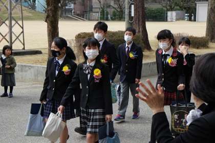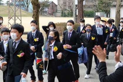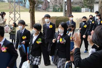 5年生、教職員、保護者の方等に見送られ、卒業生たちは晴れやかな表情で巣立っていきました。