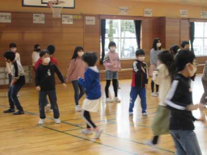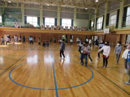 4年生最後の集会を行いました。体育館で、ドッヂビーとじゃんけんピラミッドをしました。限られた時間でしたが、とても楽しい思い出になりました。