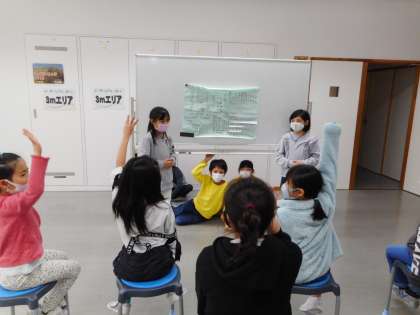3年生の総合的な学習の時間の発表を見せてもらいました。3年生は自分たちも調べた東部のすてきなところをもっと詳しく調べていて、それをクイズや人形劇を交えながら楽しく教えてくれました。すてきな3年生の姿に、子供たちは「あんな3年生になりたいな」と口々に言っていました。