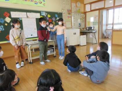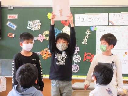 今日は、最後のお楽しみ集会を開きました。係ごとに友達と協力し、読み聞かせ・ジェスチャーしりとり・くじびき等、楽しい出し物をしました。2年間一緒に勉強をしたり、遊んだりしたことを思い出していました。「すてきがいっぱいの一年間になったよ」と笑顔で話している子供たちの姿が印象的でした。