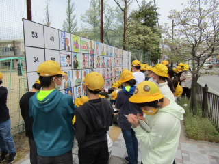 子供たちは、社会科で日本国憲法について学習し、国民の権利として参政権があることを知りました。この後、政治のしくみと選挙について学習します。そこで、学校のすぐ近くに掲示してある選挙ポスターを見に行きました。見比べることで、ポスターに様々な工夫があることに気付きました。