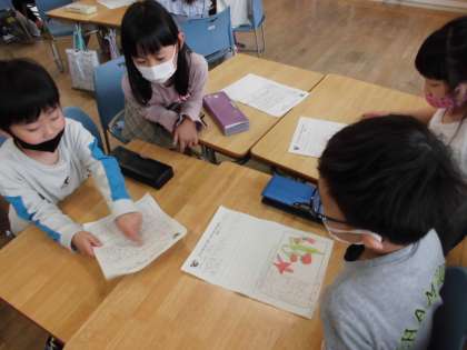 生活科で野菜の学習をしています。鉢で育てられる野菜について、基本の育て方や上手に育てるコツ、おいしい調理法等、調べてきたことを話し合いました。もっと知りたいことを質問したり、知らなかったことをカードに書き加えたりして、野菜の知識を増やしました。子供たちは、「早く育てたい!」と意気込んでいました。