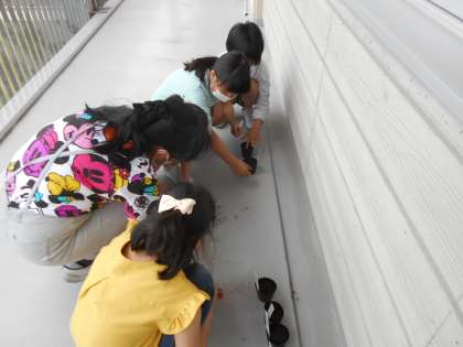 理科の学習で育てるヘチマの種を植えました。子供たちは小さいヘチマの種を大事そうに土の中に入れています。