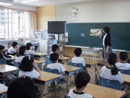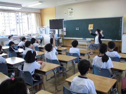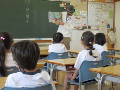 月曜日の朝活動には、ボランティアの方に読み聞かせをしていただいています。傘のお話や卵の話、国語の教科書に載っている「3年とうげ」等、たくさんの面白い絵本を読んでいただいた子供たちはとても嬉しそうで、物語の世界に引き込まれていました。